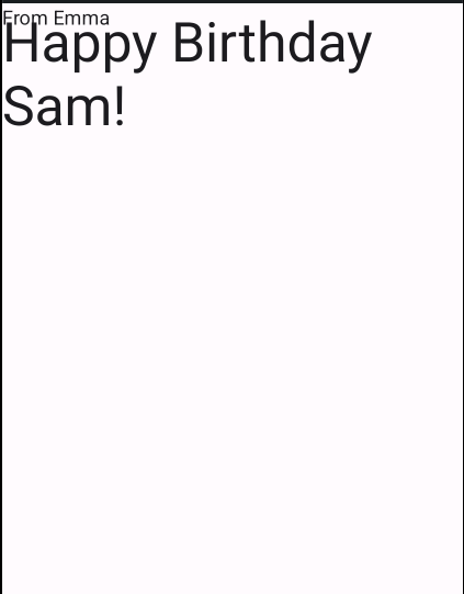 Compose의 세 가지 표준 레이아웃 요소는 Column, Row, Box composable이 존재한다.이 셋은 상위 UI 요소 역할을 할 수 있다. 즉, 이 안에 다양한 ui 요소를 담을 수 있다는 것이다. 예를 들어, 단순히 composable function 안에 다음과 같이 text를 나열할 수 있는데,@Composablefun GreetingText(message: String, from: String, modifier: Modifier = Modifier) { Text( text = message, fontSize = 100.sp, lineHeight = 116.sp ) Text( text = from, font..